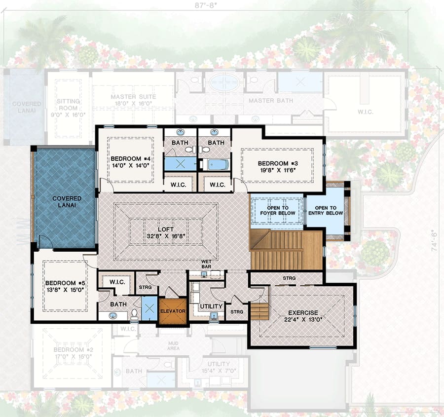 From the foyer to the loft, from the garage to the outdoor fireplace, every element in this two-story coastal house plan has been designed to create a living experience that’s both functional and luxurious—a place where memories are made, and property value grows.