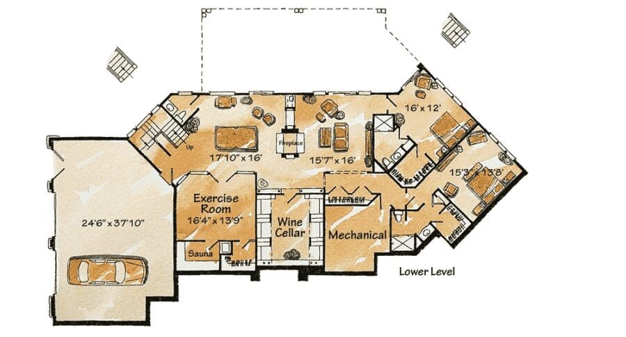 The lower level isn’t just storage — it’s a full lifestyle hub. From the exercise room with sauna to the wine cellar and guest bedrooms, it’s a place to unwind, entertain, and recharge.