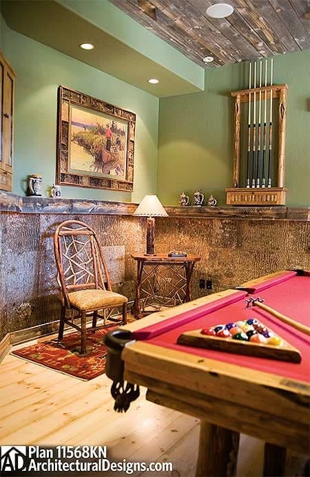 On the opposite end of the floor is a game room that overlooks the staircase below.