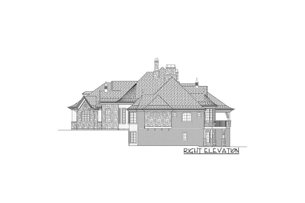 From the long foyer to the optional sports court, this European mansion’s floor plan shows careful attention to flow, utility, and elegance.
