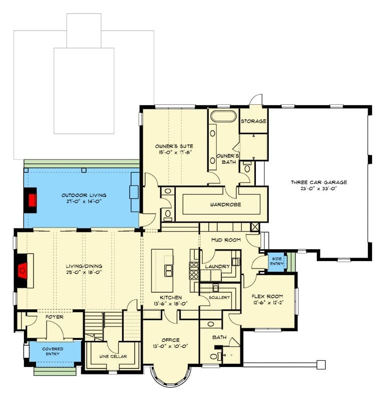 One of the highlights of this house plan is the extensive outdoor living area.