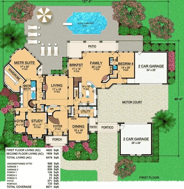 Now, can we take a moment to appreciate the four-car garage? It’s not just attached—it’s smartly designed with both front and rear entries.