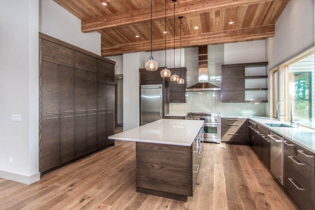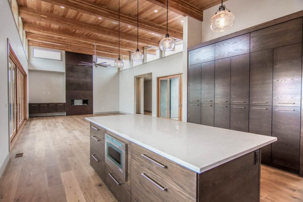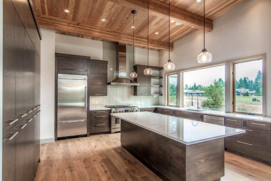 It features a large island — big enough for prepping dinner, sipping coffee, or serving up snacks during a party.