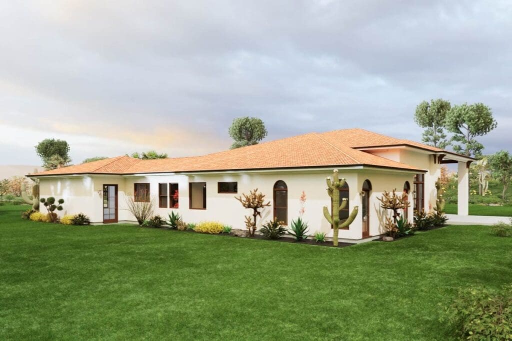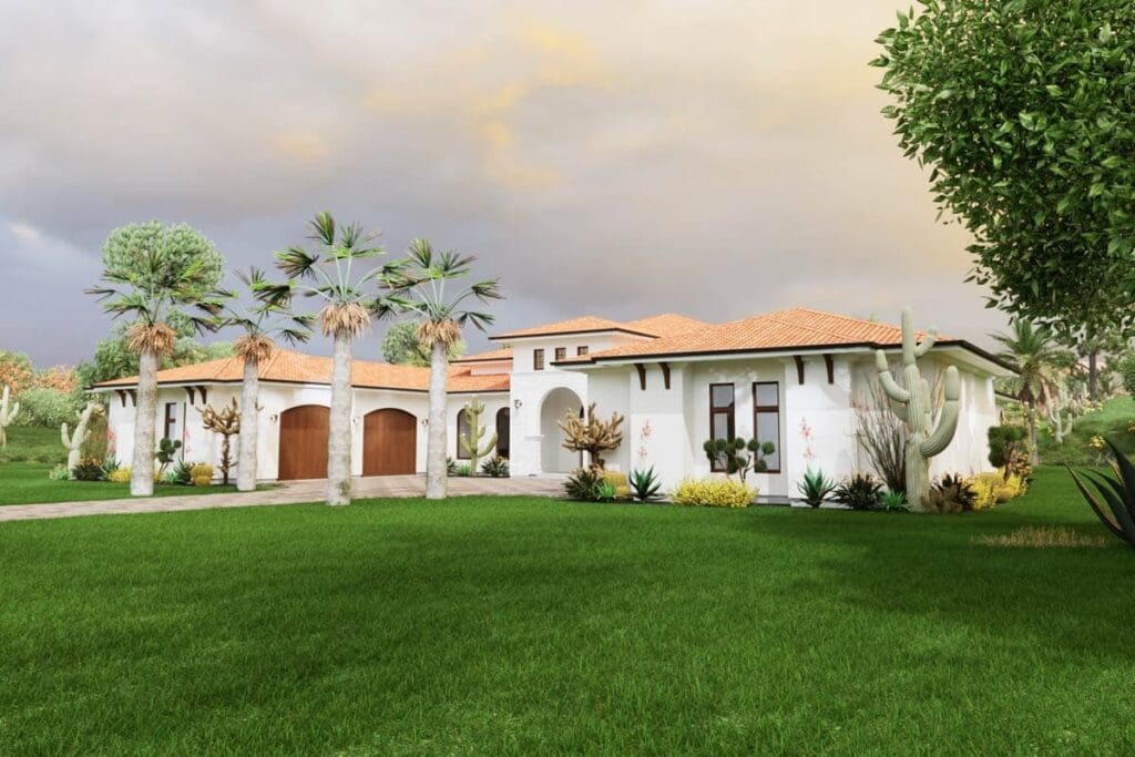 This single-story Mediterranean home plan brings together everything today’s homeowners crave—open living, smart layout, and understated elegance.