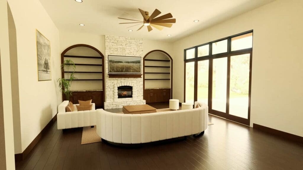 With built-ins flanking the fireplace, there’s ample space to showcase family photos or that Mediterranean pottery you impulsively purchased on vacation.