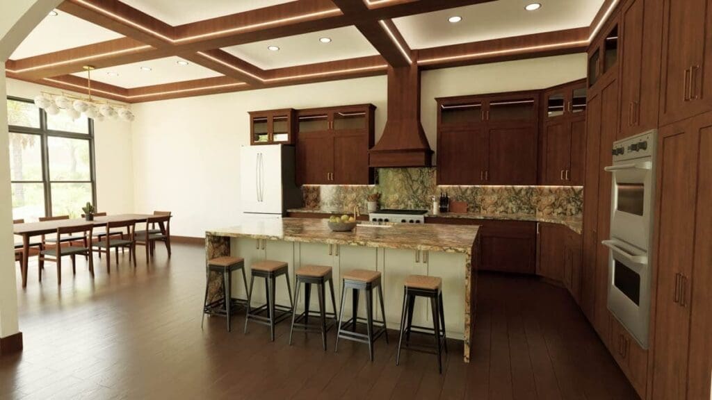 The oversized island invites casual conversations, while the hidden pantry keeps everything organized and out of sight (because nobody needs to see the cereal chaos).