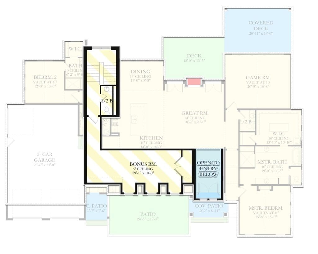 Single-Story 6-Bedroom Transitional Farmhouse with Vaulted Game Room (Floor Plan)