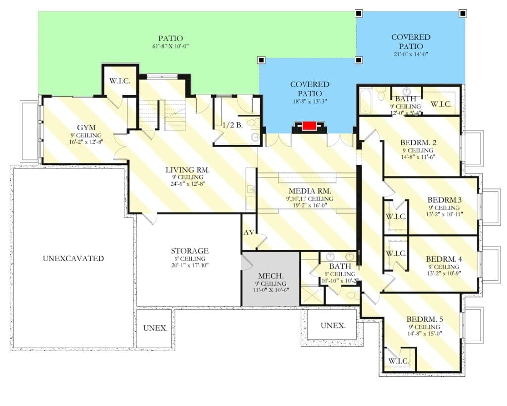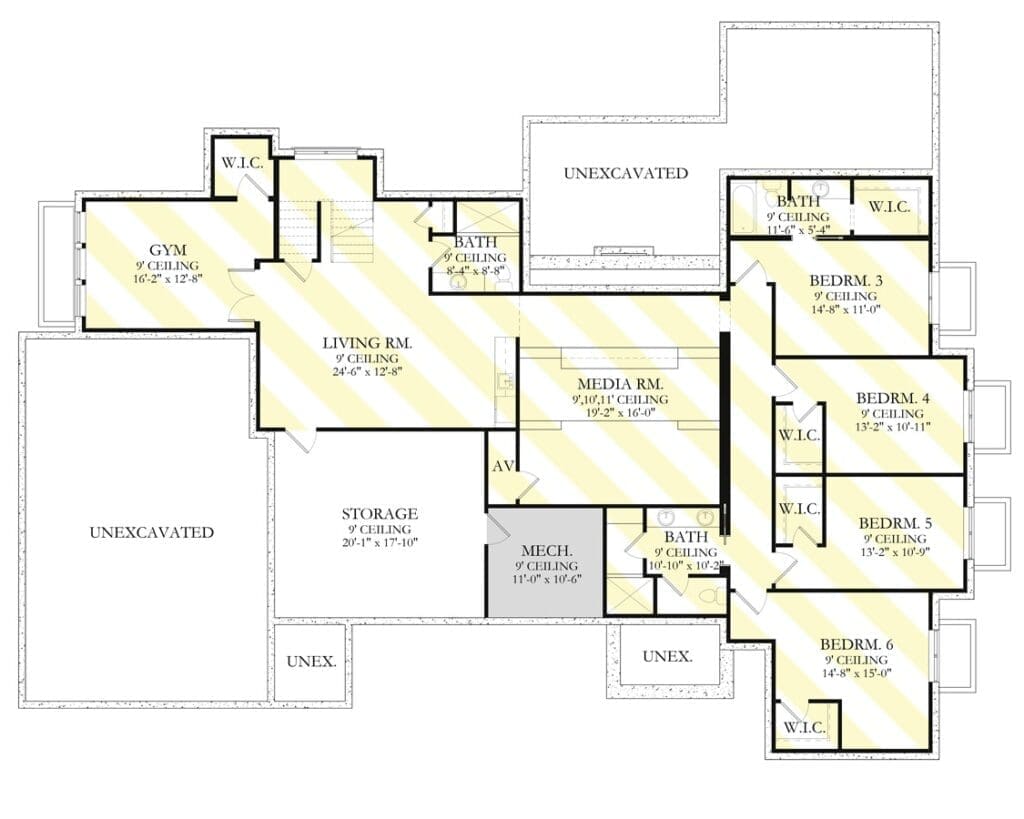 Imagine a living room, media room, home gym, and four more bedrooms—all with walk-in closets.