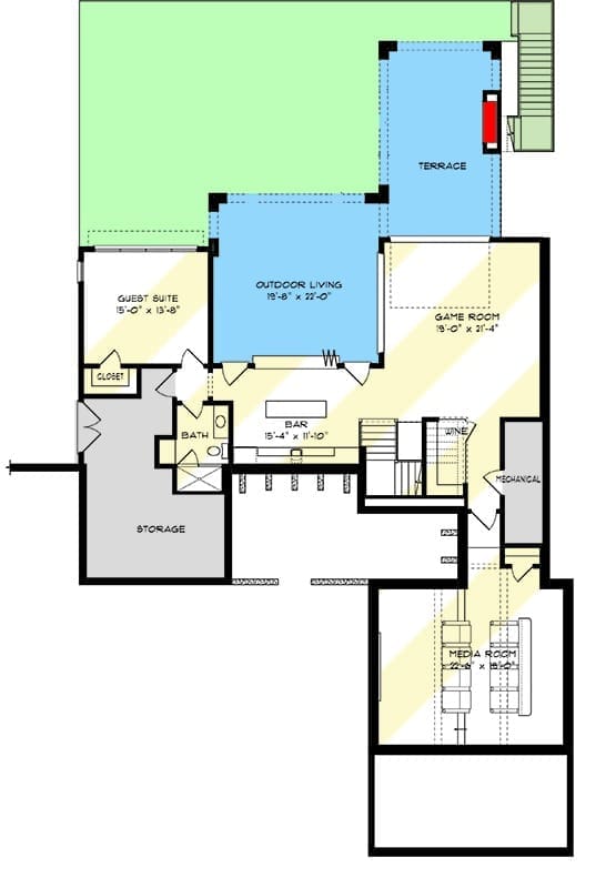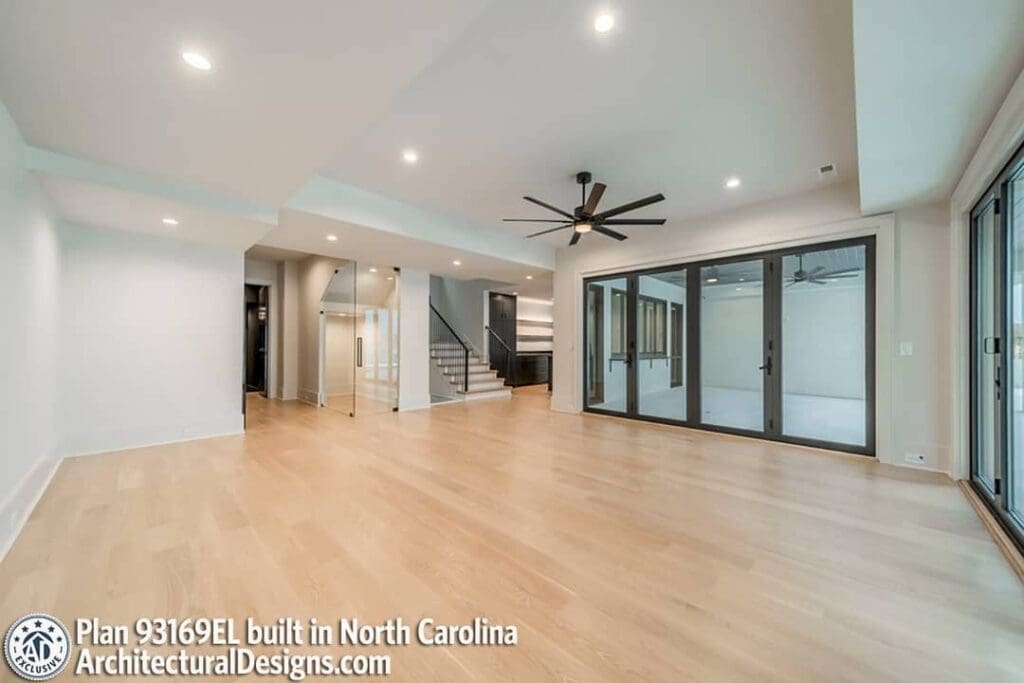 At the heart of this level is the rec room, a flexible space that can morph into anything you need—a playroom, a media area, or a home gym.