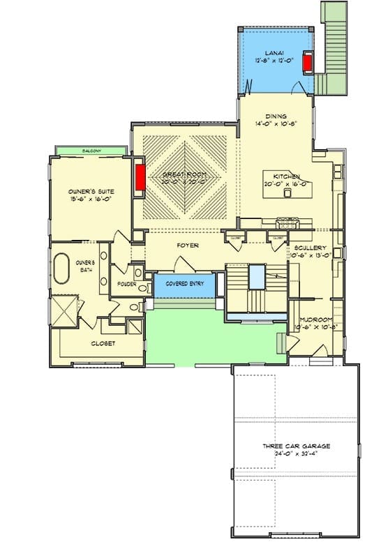 And let’s not forget the mudroom hiding behind a pocket door, connecting directly to the three-car garage.