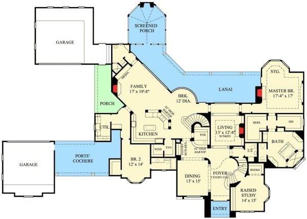 Two-Story 4-Bedroom French Country Estate with Home Theater and Game Room (Floor Plan)