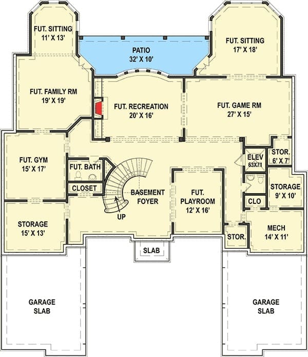 Two-Story 6-Bedroom European Chateau House with Residential Elevator (Floor Plan)