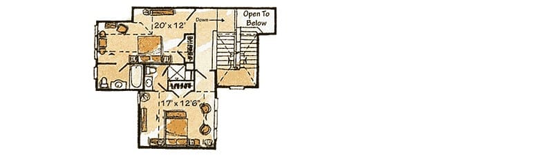 Every detail in this upper-level plan feels deliberate, maximizing space while keeping the mountain-lodge charm intact.