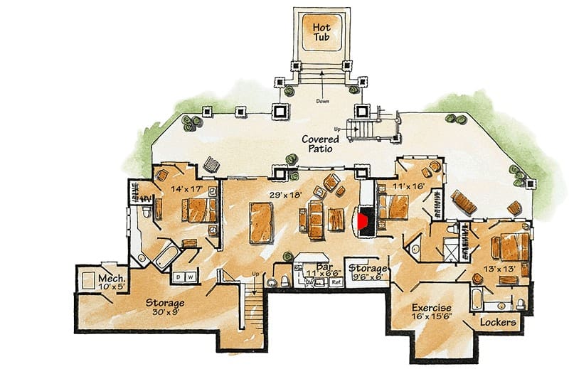 The centerpiece here is the 29′ x 18′ recreation room, large enough for a pool table, a media setup, and enough seating for the entire family.